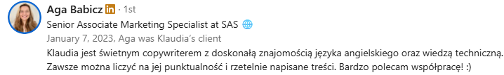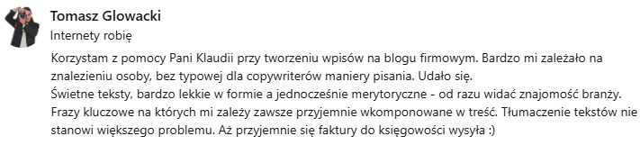 Zobacz, co o współpracy ze mną mówią moi klienci: